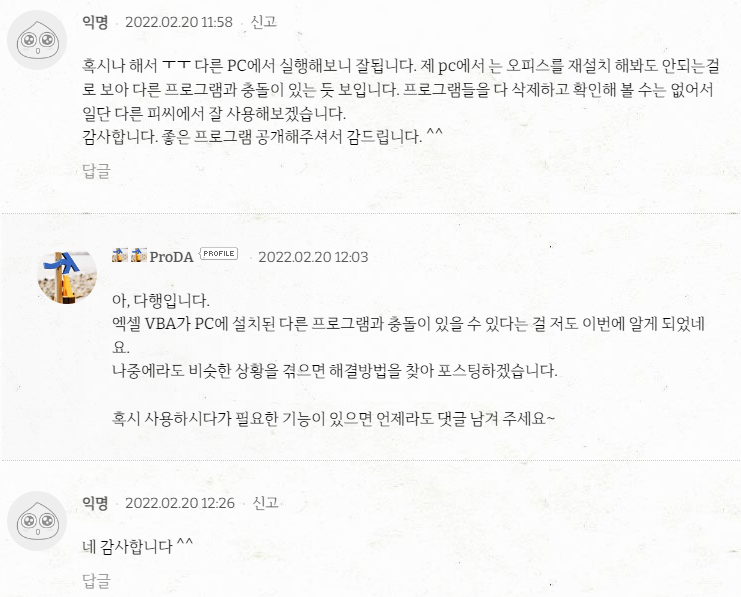 이때는 문제가 재현되지 않아서 해결방법을 찾지 못했었고, 다행히 다른 PC에서는 정상적으로 실행된다고 하여 더이상 확인하지 않았었다.