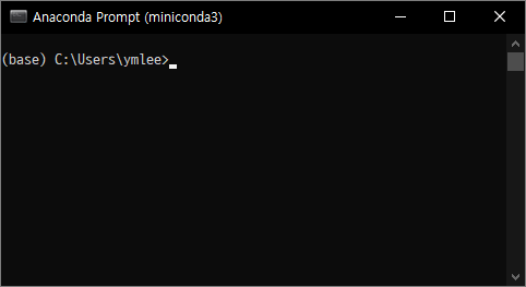 Miniconda Prompt를 처음 실행하면 기본 환경(base)이 활성화되어 있다. (위 이미지 참조)