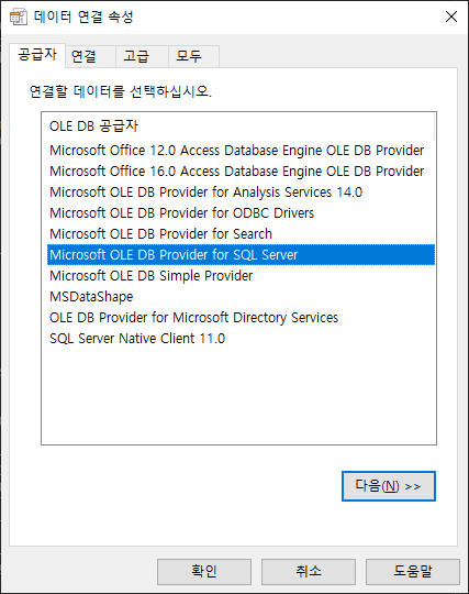 UDL(유니버설 데이터 링크) 구성 - OLE DB Driver for SQL Server