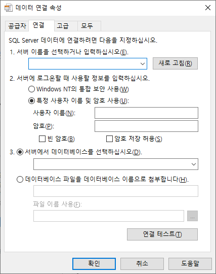 - MS OLE DB for SQL Server (SQL Server 인증)